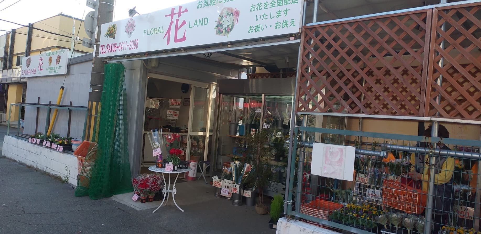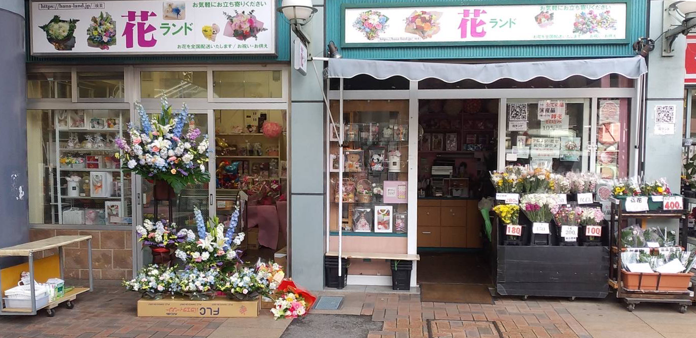花ランドは3店舗(尼崎立花駅前店、尼崎大庄北店、大阪桃谷駅前店)です。